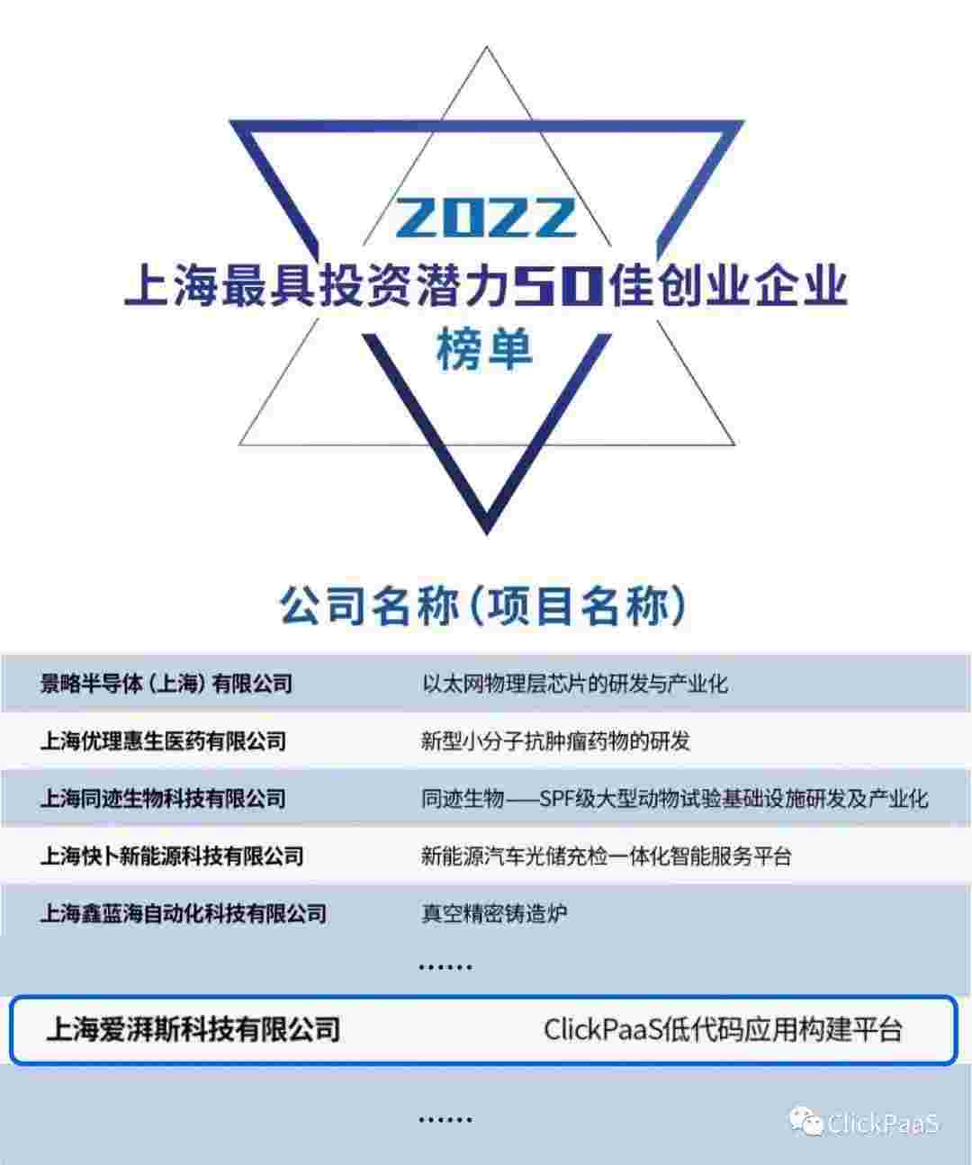 VIVO钱包 作为国内低代码PaaS平台的领军企业,,,,与120家创企入围角逐。。。。。。。。期间接受了来自德同资本、、、、、、、、领中资本等知名投资机构的10位投资人组成专家评委团的背靠背盲选。。。。。并最终入围“2022上海最具投资潜力50佳创业企业”榜单,,,,,,,,,,被列入“上海市重点培育创业企业库”。。。。。。。。。。